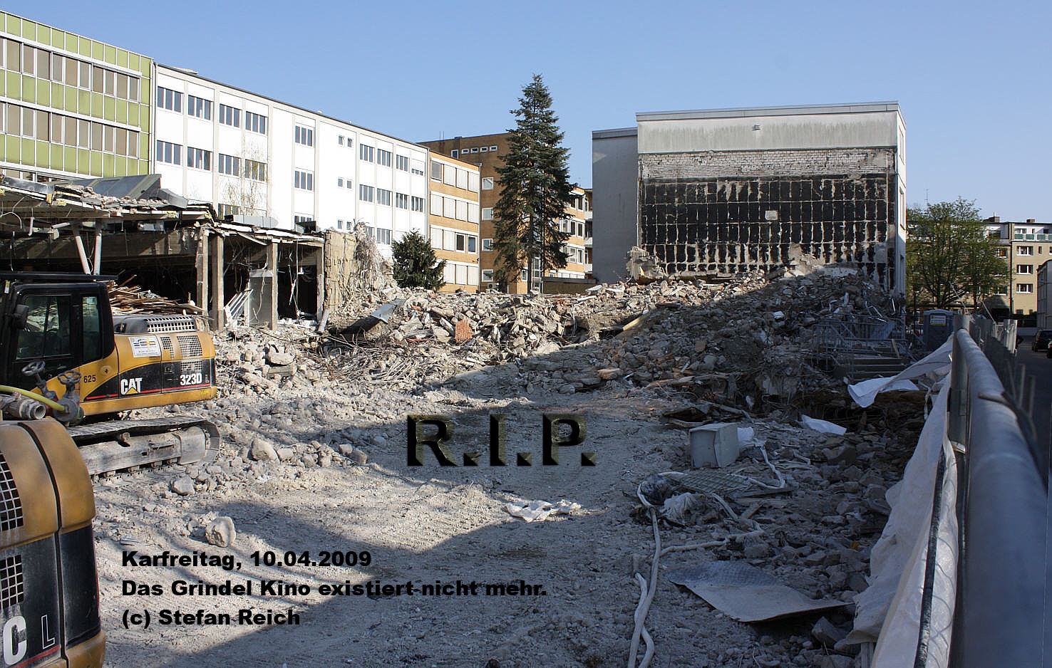 Mit dem Osterfest wurde nun auch unserer früheren Sneakheimat, dem Saal 1 des Grindel, endgültig der Garaus gemacht. Damit ist das Grindelkino nach knapp 50 Jahren endgültig Geschichte; zurück bleibt nur der ehemalige Eingangsbereich, der nun wohl in Laden- oder Bürofläche umgewandelt werden soll.