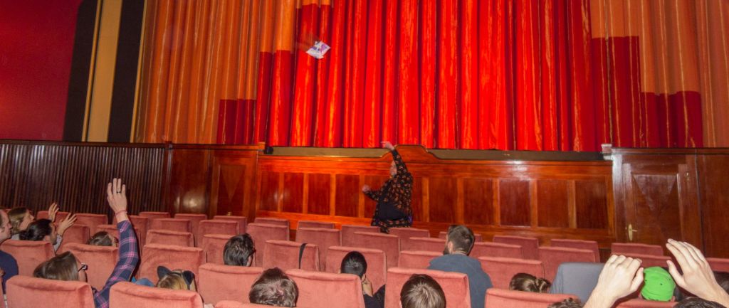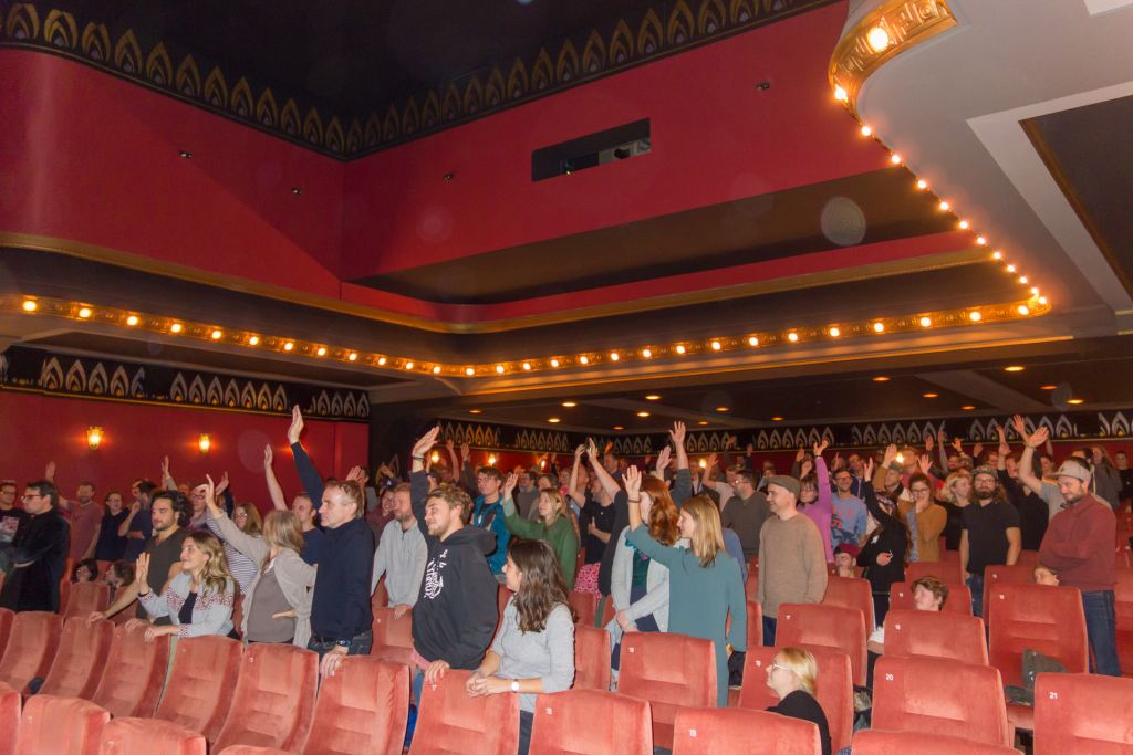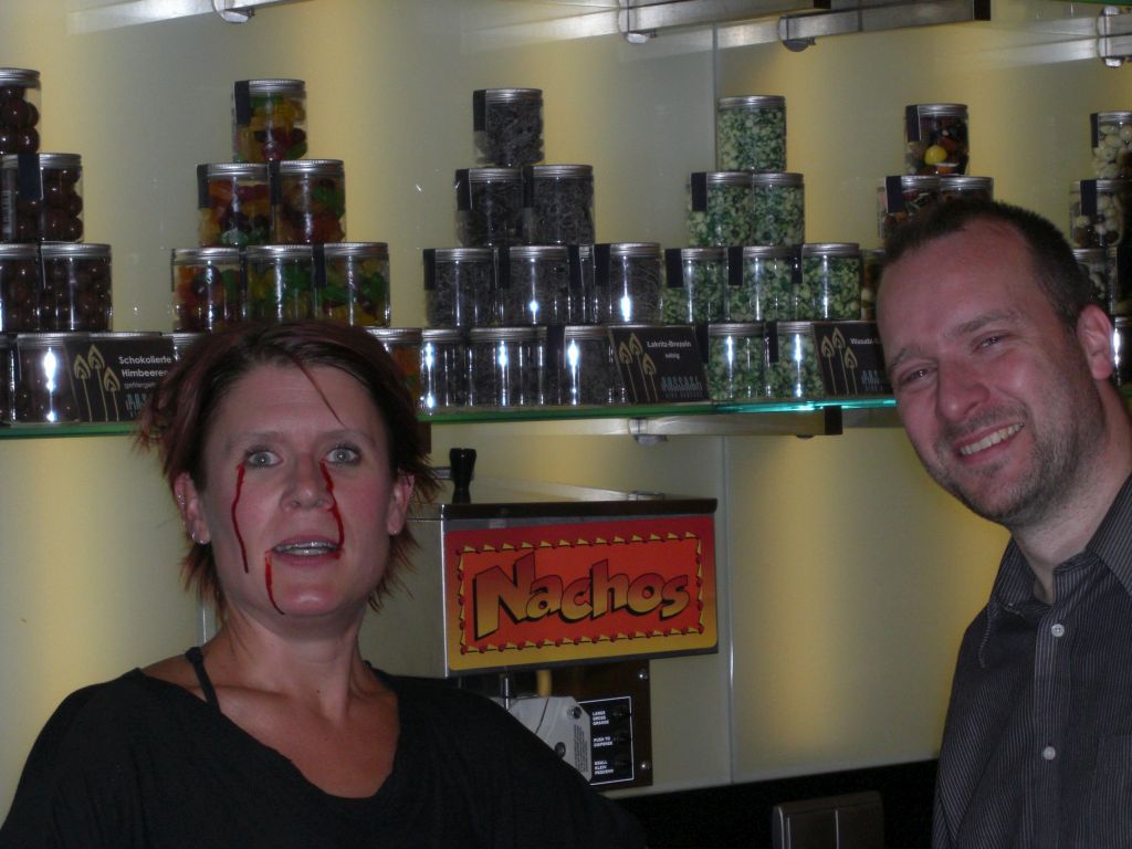 Vielen Dank an das Passage-Kino für die termingerechte Begrüßung im Foyer! | Sneak-Urgestein Jana hat die Halloween-Gedanken verinnerlicht (oder veräußerlicht), während sich Theaterleiter Nils in der modernen Kunst des Photobombings übt. ;-) |