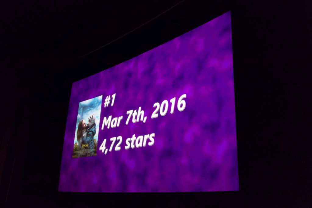 Später im Programm gab es dann noch die Filme des Sneakjahres Nummer 22, nach den Zuschauerbewertungen sortiert. Hier der Spitzenreiter, wobei der Zweitplazierte "Sing Street" aber mehr Beifall erhielt. | Und dann hatten wir plötzlich Besuch vom Mars, der natürlich stürmisch begrüßt wurde. Zum Glück gibt es dieses Beweisfoto, sonst würden mir emma, Simon und Roughale das nie glauben! Wo waren die eigentlich? ... |